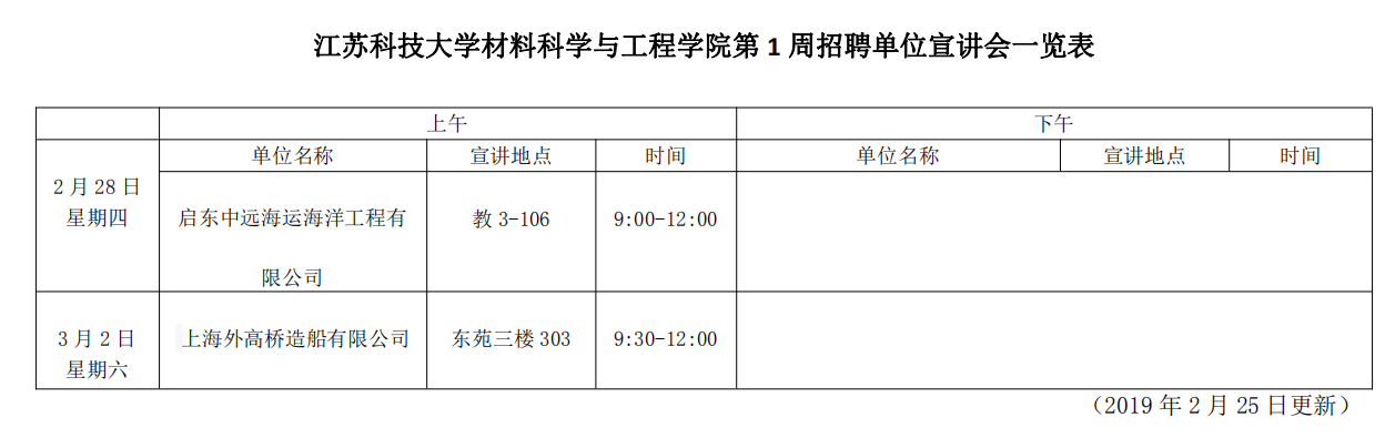 招聘会|材料学院第1周招聘单位宣讲会一览表