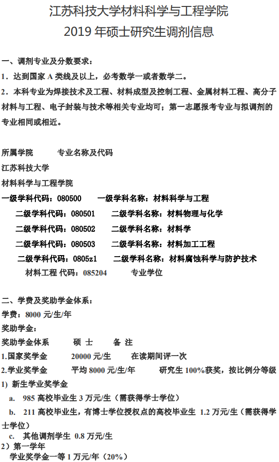 考研调剂|材料科学与工程学院2019年硕士研究生调剂信息