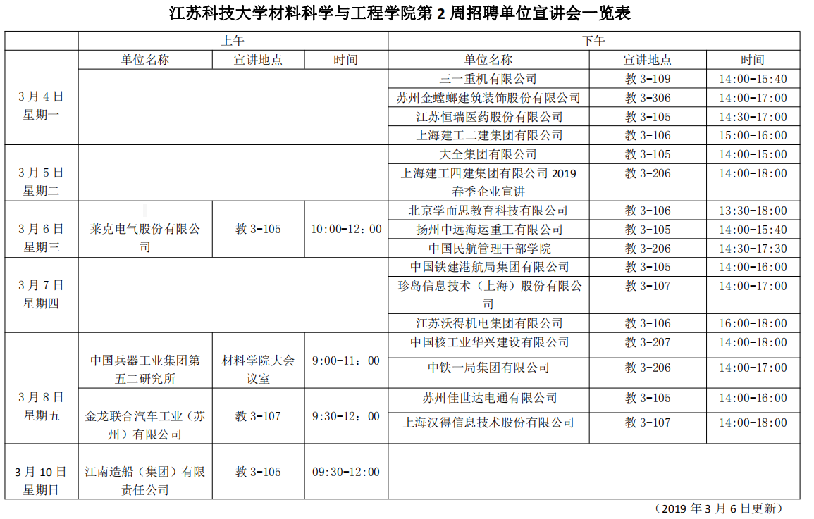 招聘会|材料学院第2周招聘单位宣讲会一览表(2019年3月6日)