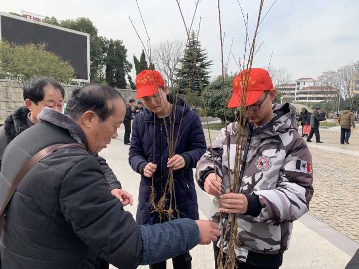 乘着春风,志愿者成员们早早的来到润州广场,充满干劲的样子丝毫不惧寒风,大家分工合作——摆放宣传栏,讲解宣传内容,一切都进行的有条不紊。广场中央霎时间成为了大家的瞩目点,同学们耐心地为市民们宣传绿色环保的理念,孩子们那一双双发亮的小眼睛,大人们也纷纷点头赞同。志愿者们还给市民们带去了不少桃树树苗,并分发给乐于为绿色环保作贡献的市民们,让更多的市民通过参与植树的形式,报恩地球母亲,相信将在不久以后便会桃树芬芳,春意更加盎然。