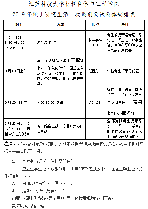 材料学院2019年硕士研究生第一次调剂复试总体安排