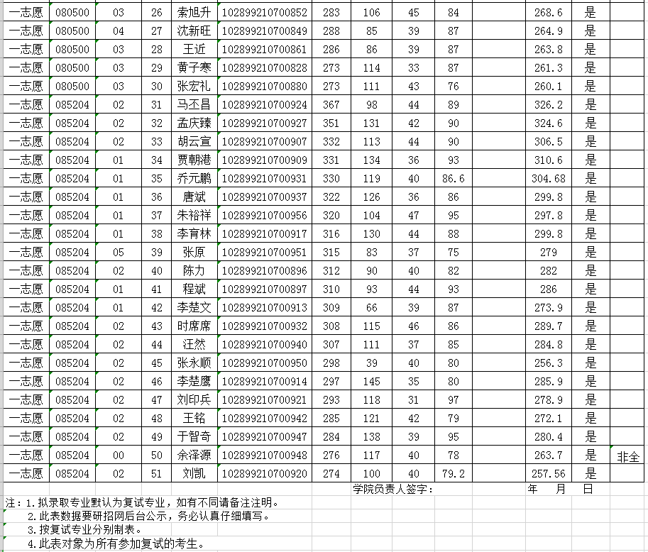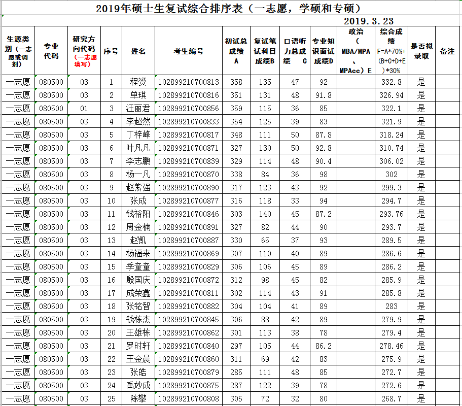 (一志愿,学硕和专硕)材料学院2019年硕士生复试综合排序表