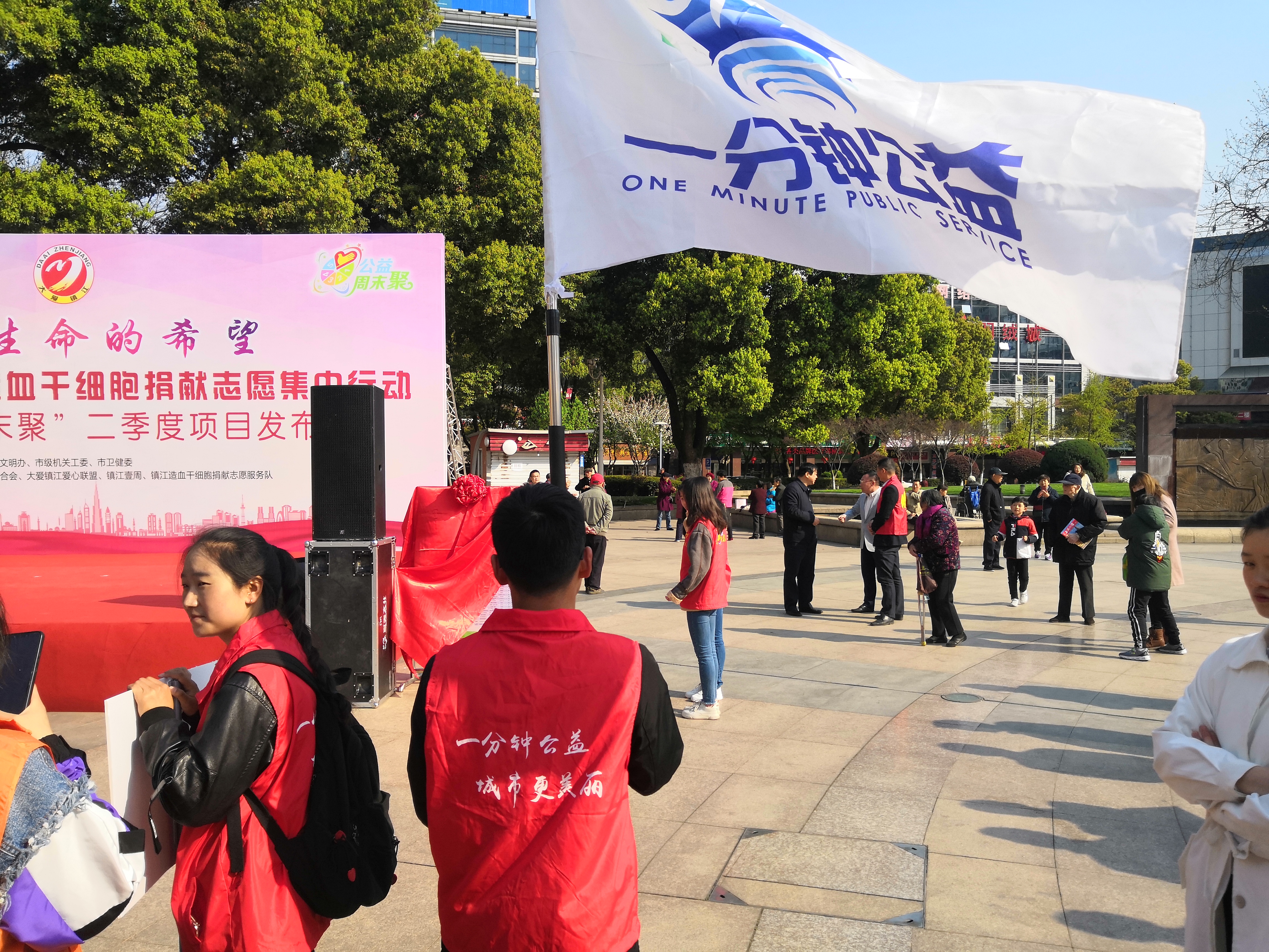 3月31日,镇江大市口城市客厅春意盎然,人潮涌动。第17届造血干细胞捐献志愿者血样集中采集活动正式启动。材料学院蒲公英义工站联合一分钟公益团队参与此次活动。
