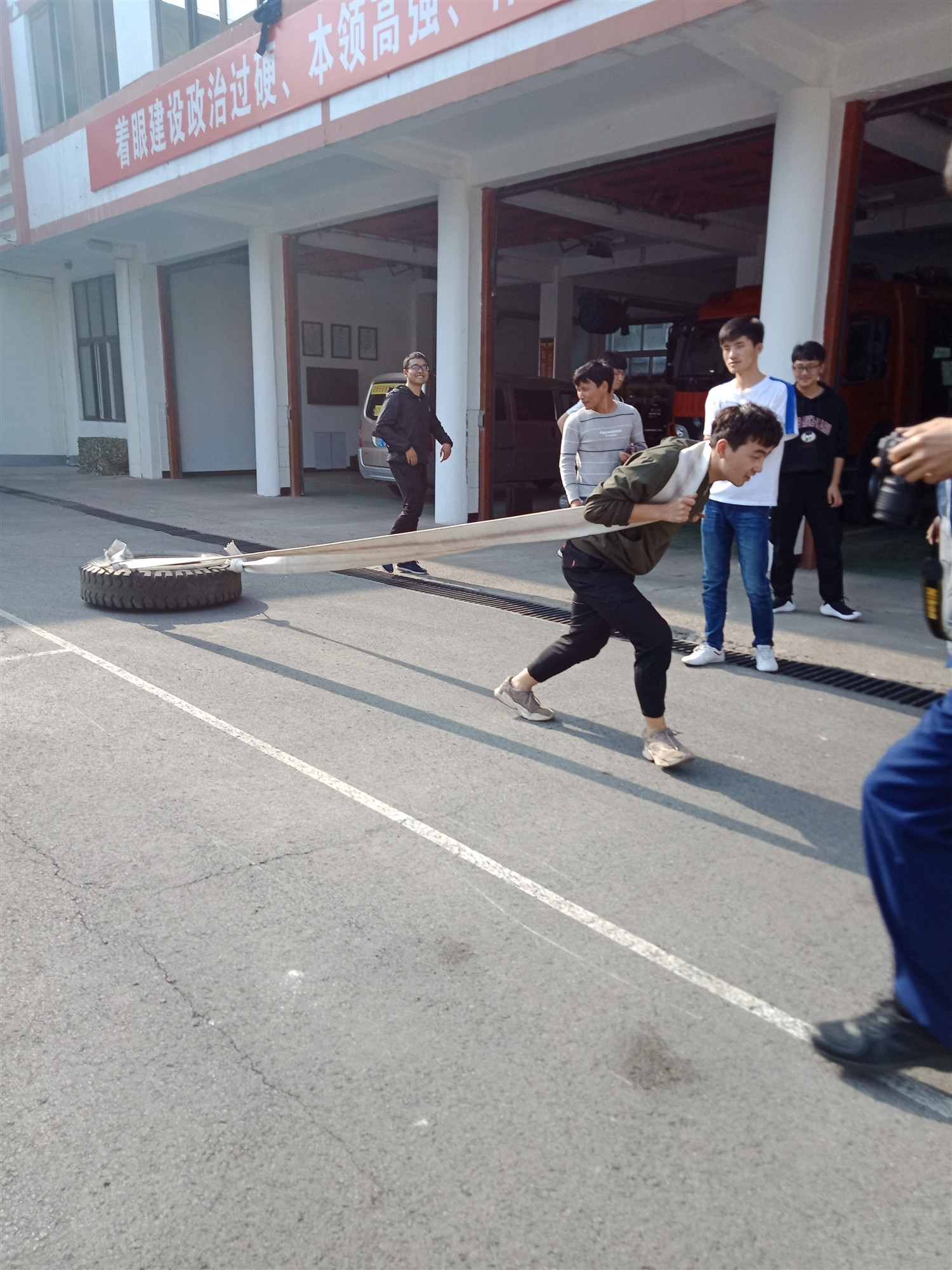 志愿者们统一有秩序骑自行车赶往西校区附近的消防大队。消防队任班长耐心地为大家讲解火灾防患的相关知识,包括生活用火安全、家庭防火须知、如何预防家庭火灾、家庭火灾扑救方法、火场逃生自救方法等。并让大家亲自体验了一下穿消防服,翻越障碍物,走独木桥。在体能训练室里,教大家如何进行自救和营救他人。大家在体验中紧张而不慌张,感受到在危难时间需要更多的知识技能来保护自己。亲自体验了消防员的生活,大家更加深刻地意识到消防安全的重要性,珍爱生命,走进消防。