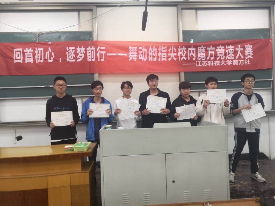 4月27日,江苏科技大学魔方社与江苏大学魔方社、镇江高专魔方社在江苏科技大学西校区综合楼联合举办“舞动的指尖”校内魔方竞速大赛。