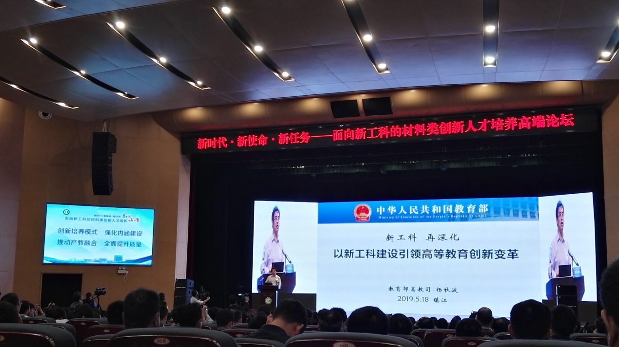 2019年5月17日至19日,由教育部高等学校材料类专业教学指导委员会主办,教育部高等教育司指导,江苏大学承办的2019 年“新时代·新使命·新任务——面向新工科的材料类创新人才培养高端论坛”在镇江召开。来自全国120余所高校、5家出版社以及中国石油和化学工业联合会等单位的330多名专家学者代表参加会议,我院黎文航、陈洪美、周海骏等多位教师参加此次会议。
