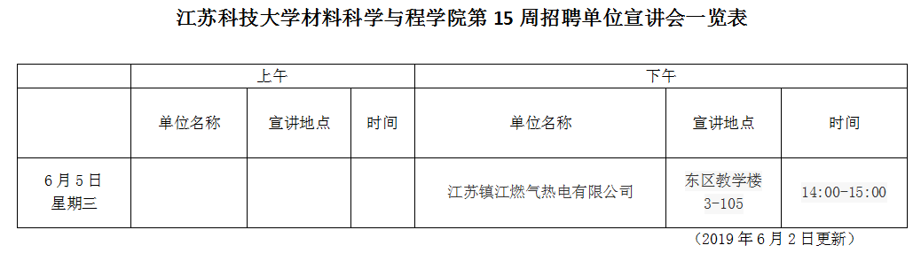 招聘会|材料学院第15周招聘单位宣讲会一览表(2019年6月4日)