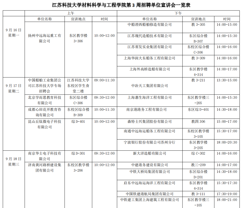 招聘会|材料学院第3周招聘单位宣讲会一览表(2019年9月16日)