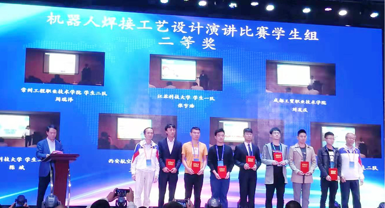 2019“中焊杯”全国机器人焊接技能竞赛于2019年10月17-20日在常州举办。此次比赛由中国焊接协会、全国机械职业教育教学指导委员会等单位主办,共有来自全国10余省份、53支代表队参赛。我校材料学院黎文航、朱杰老师带领焊接专业本科生组建了2支代表队,与企业、高职院校代表队同台竞技。最终我校获得团体二等奖和三等奖,机器人焊接实操二等奖和三等奖,机器人焊接工艺设计二等奖和三等奖的好成绩。