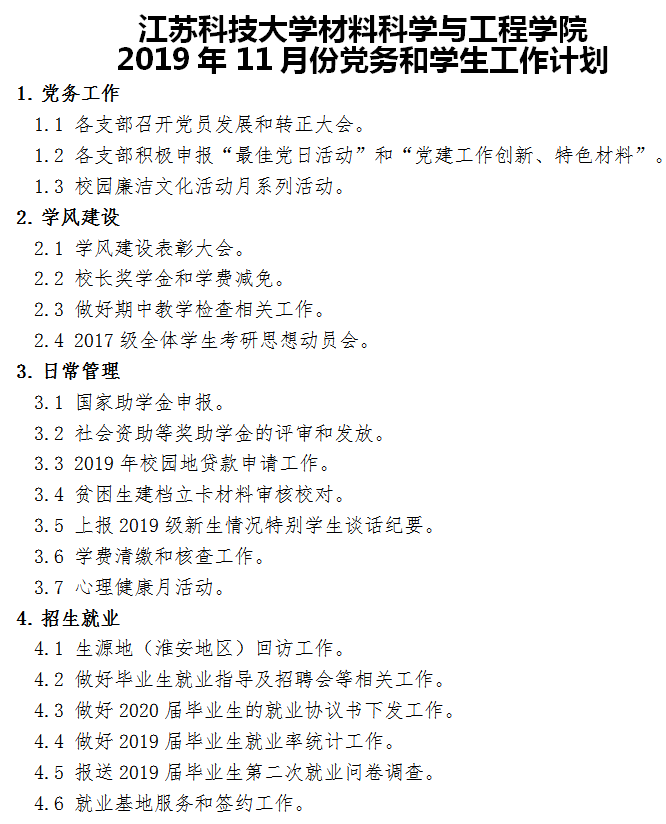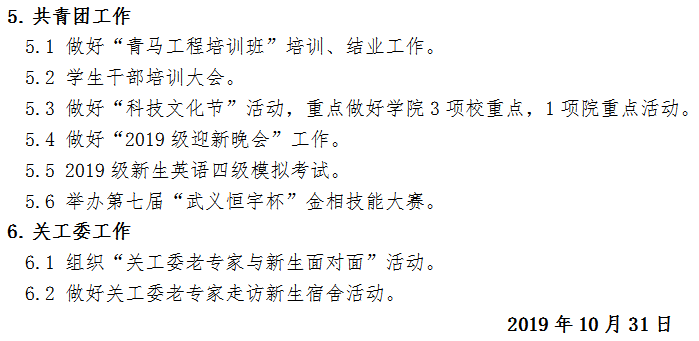 工作计划|2019年11月 党建、学生工作计划