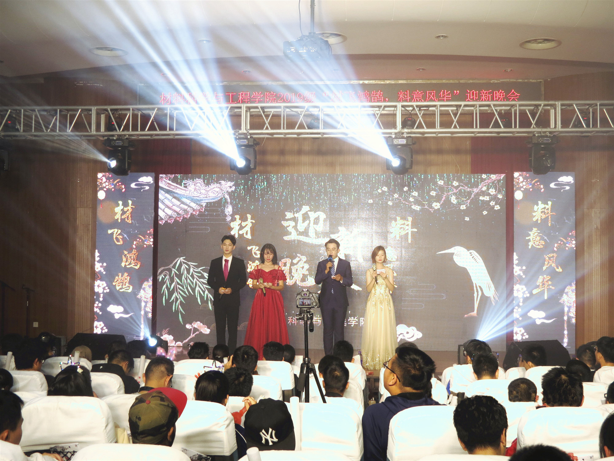 材飞鸿鹄,料意风华。11月1日,材料学院在西校区学术报告厅举办2019年迎新晚会。学院党委副书记赵莉、2019级学业导师、学院辅导员和2019级全体新生参加。