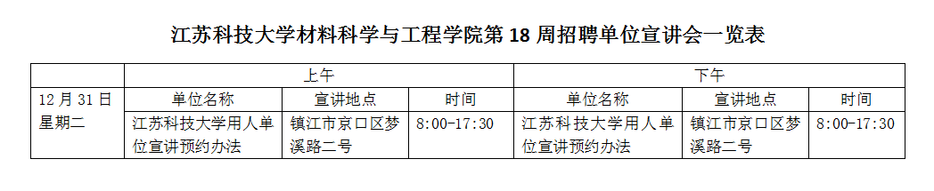 招聘会|材料学院下半年第18周招聘单位宣讲会一览表(2019年12月31日)