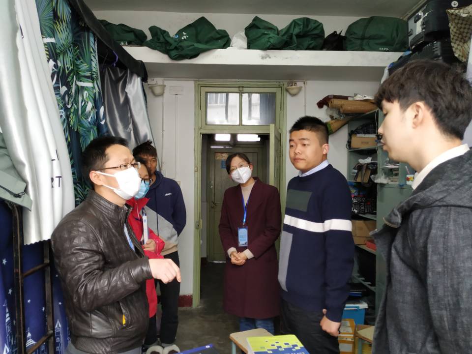 进入C4宿舍后,每到一间宿舍,学院党委书记晏超细致地询问同学们的学习、生活、就业等各方面情况。“防疫口罩是否充足?”“宿舍同学都返校了吗?”“毕业设计做的怎么样了?”“工作找好了吗?”“考研报考的哪所学校?”他鼓励考研的同学要志存高远,继续深造,要就业的同学尽快找到合适工作。在宿舍里,他再次叮嘱同学们要遵守学校规定,宿舍之间不允许串门,减少与人员接触,同时提醒同学们要注意身体健康,加强锻炼,努力改善宿舍卫生。