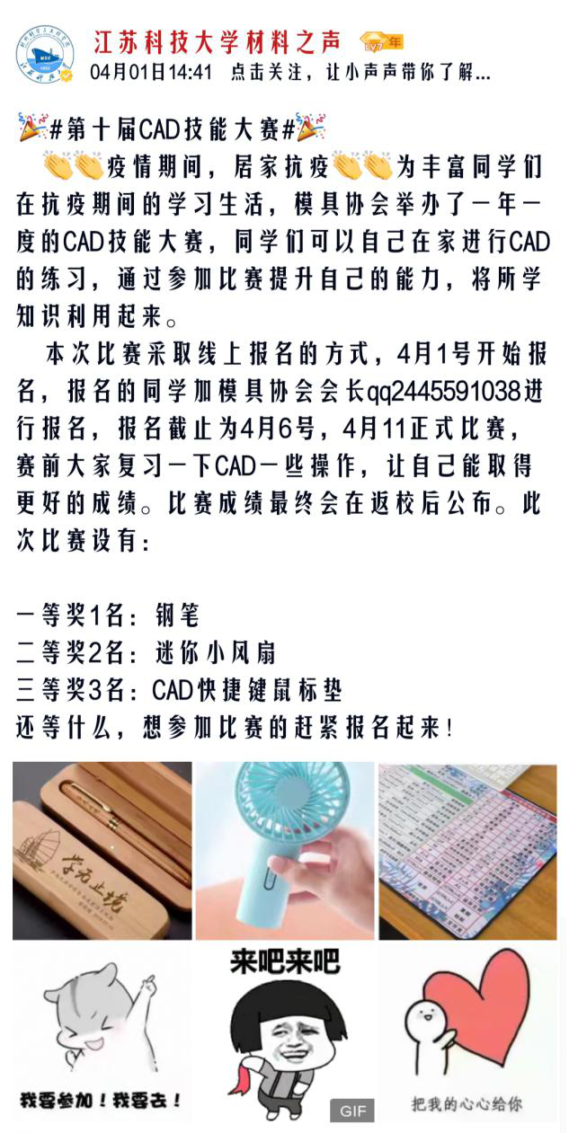 为丰富学生们在抗疫期间的学习生活,提高专业技能水平,材料学院模具协会举办第十届CAD技能应用大 赛。本次比赛由材料成型专业CAD老师周应国指导进行。经过激烈比赛层层选拔,共选出一等奖一名,二等奖两名,三等奖三名。