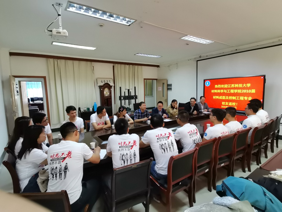 学院十分重视校友们的到来,策划安排了行程,并专门组织了座谈会,材料学院院长芦笙、党委书记晏超、党委副书记赵莉、材料成型系主任石凤健、班主任黄忠富老师出席了会议。