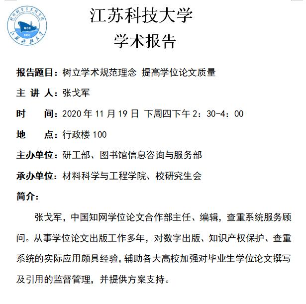 讲座预告|树立学术规范理念 提高学位论文质量