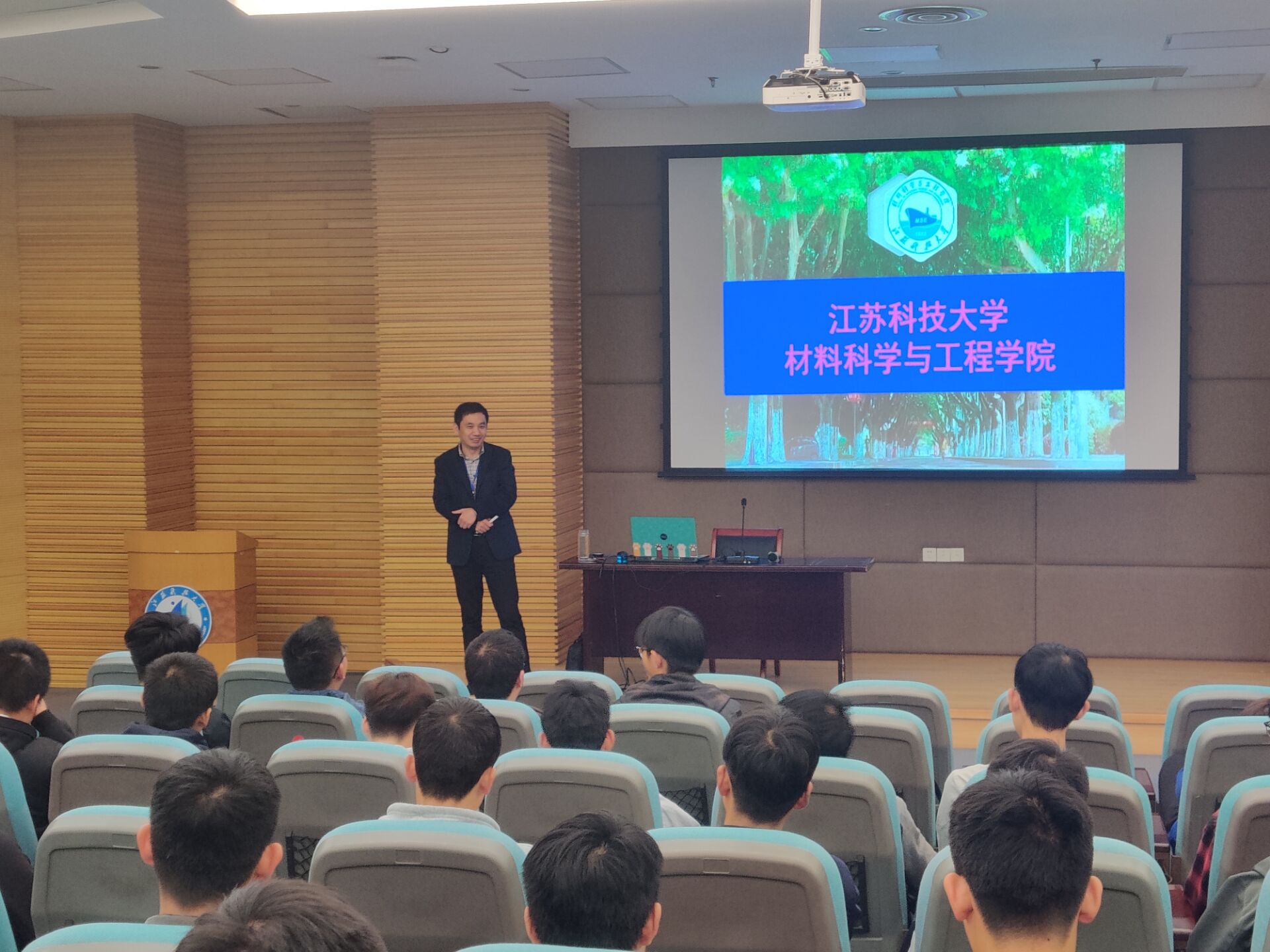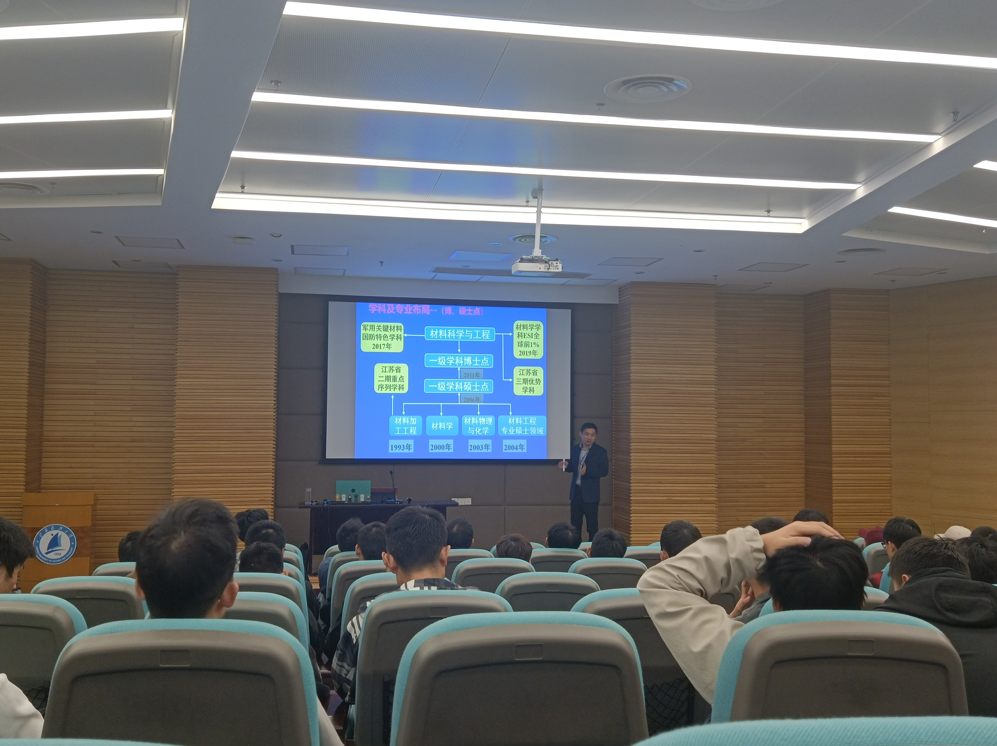 动员会上,副院长李瑞峰向同学们讲解本校材料学院的发展历史及学科介绍、师资队伍、主要研究方向和育人成果。他指出“任何一个学校都要有特色学科,而江科大的材料科学是以船舶与海洋为特色的学科”。他向大家介绍了材料学院的专业布局与六个学科平台,在国家863计划、国家自然科学基金等国家及部省级和横线研究课题共600余项,国内外著名刊物上发表论文1400余篇,材料学科已进入ESI国际学科排名前1%等等,还提到了关于焊接技术的研究方向有现代焊接装备及质量控制、舰船焊接技术。最后,他展示了近期在读研究生与企业合作的开展情况,并表示欢迎大家报考本校研究生。