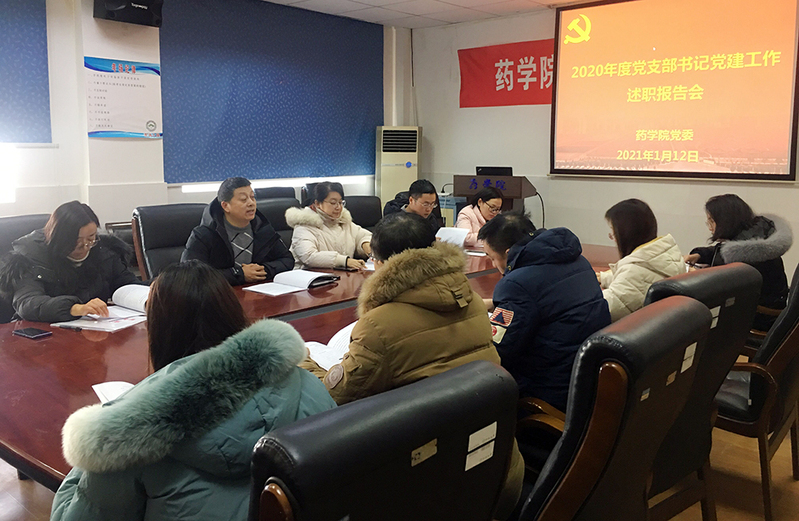 1月12日下午,药学院党委召开党支部书记党建工作述职评议会,开展2020年度党支部书记党建工作述职评议工作。