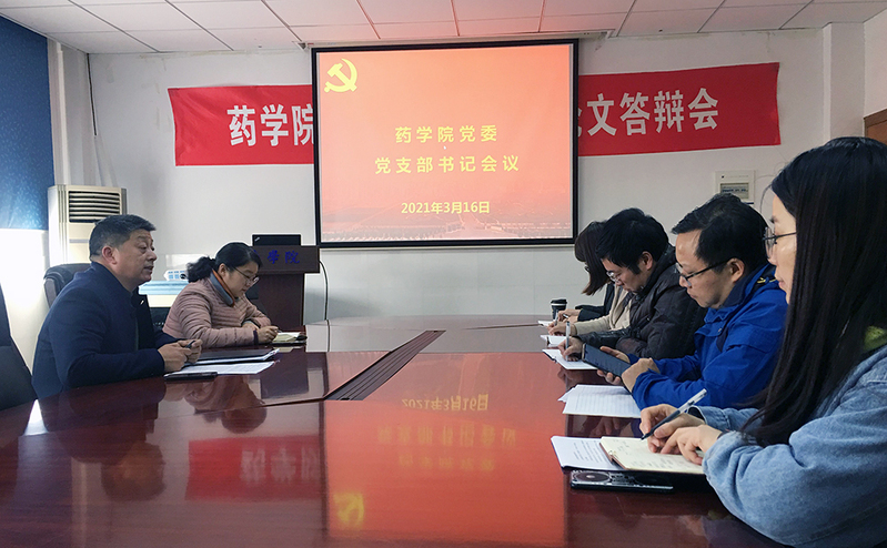 3月16日下午,药学院党委召开党支部书记会议,传达学校党史学习教育动员会精神,对学院开展党史学习教育进行动员部署。学院党委书记徐建主持会议。