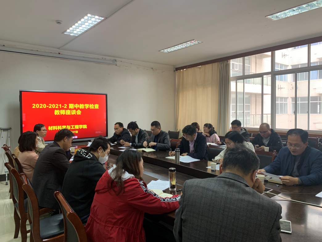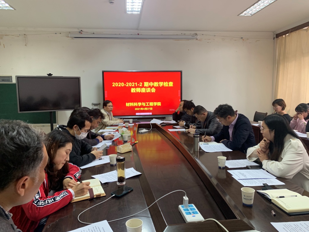4月27日下午,材料学院2020-2021学年第二学期期中教学检查教师座谈会在东校区综合实验楼材料学院小会议室召开。学院督导组组长、学院领导、系主任、专业负责人、学业导师、教务办负责人等相关负责人,来自学院近20余名教师代表参加了座谈会。