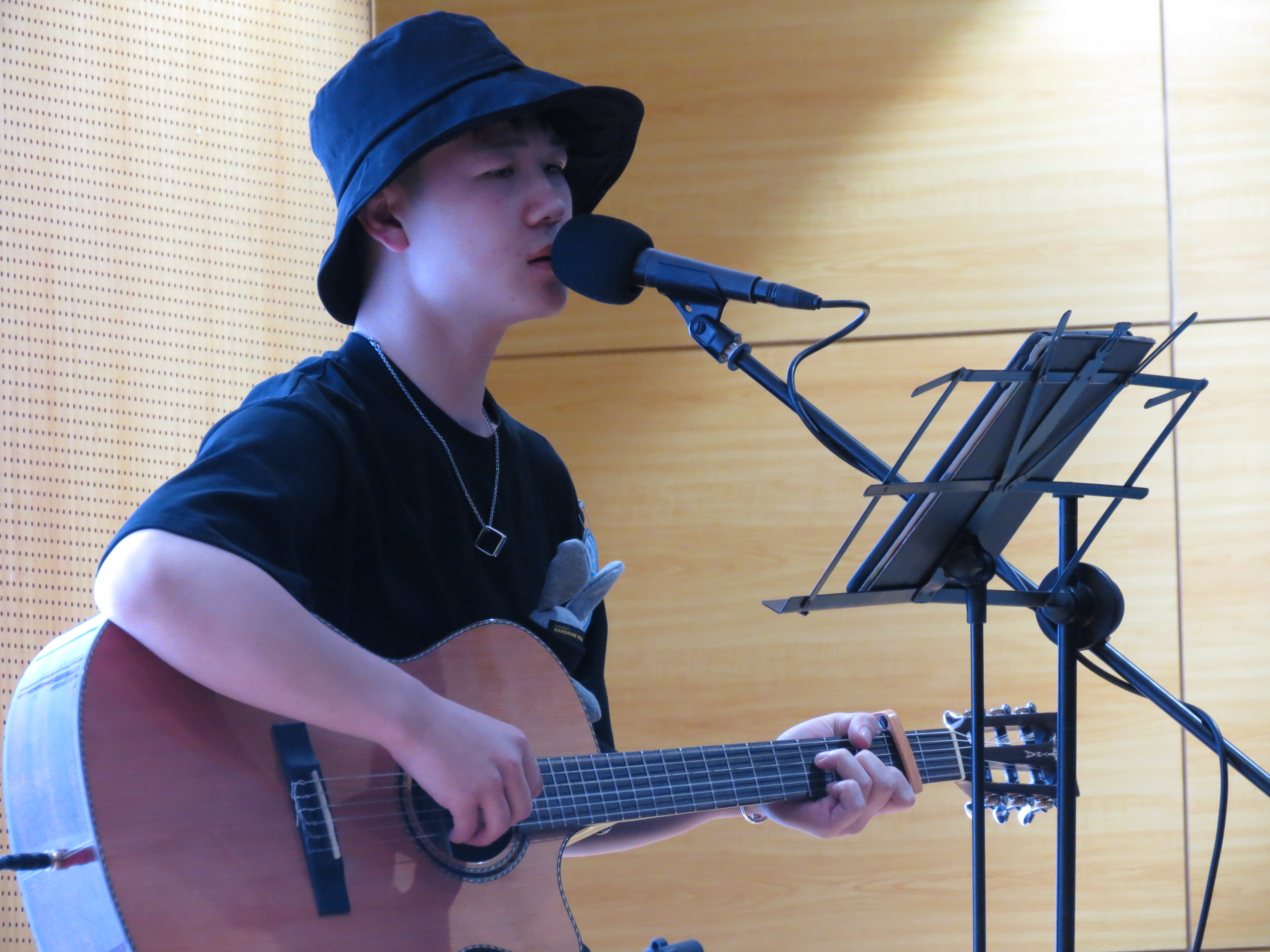 此次音乐会由郑晓珊同学主持,音乐会伊始,歌手们便夸赞了长山校区优美的校园环境。简短的闲聊后,歌手们为同学们带来了原创歌曲《沿窗》、《大笨钟》《下山行》等,还有一些暂未在公共平台发布的歌曲。悠扬的曲调通过歌手的指尖,淌过吉他,缓缓地流进听众的耳朵。让同学们盈盈于耳,感受到窗外一道风景,窗内一个故事,领略古风与民谣的碰撞,跟着曲调一拍一拍的唱。音乐会在悠扬婉转的大合唱《陪我到可可西里去看海》中圆满结束。