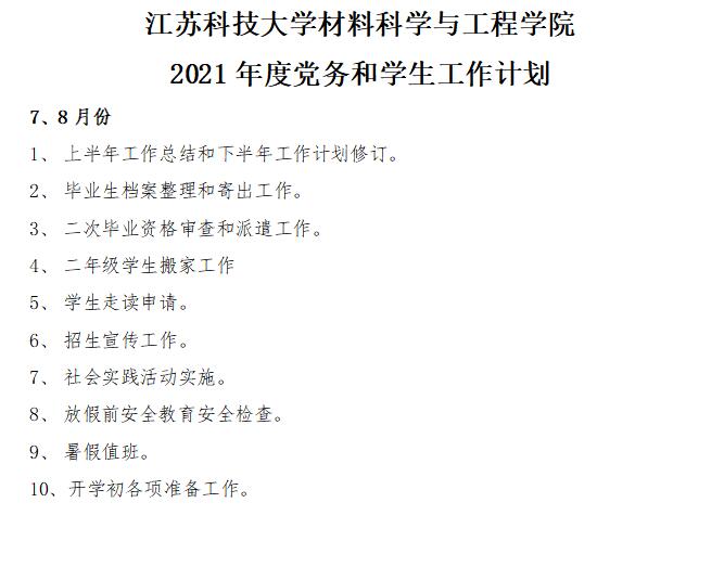 工作计划|2021年7、8月份党建、学生工作计划