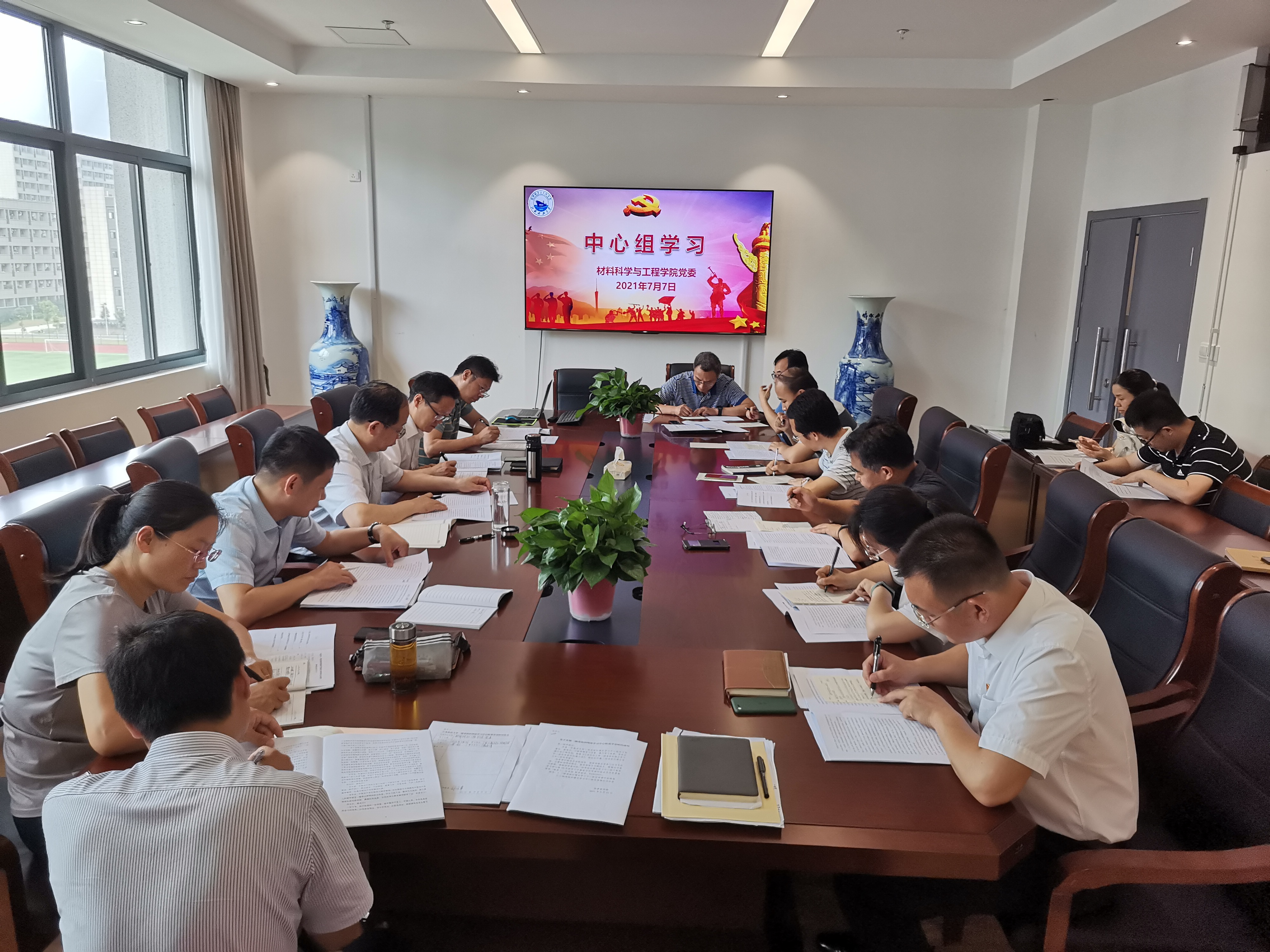 7月7日下午,材料学院党委理论学习中心组举行集体学习会,专题学习习近平总书记在庆祝中国共产党成立100周年大会上的重要讲话精神。材料学院党委书记晏超主持,校党委副书记许俊华进行巡学旁听。