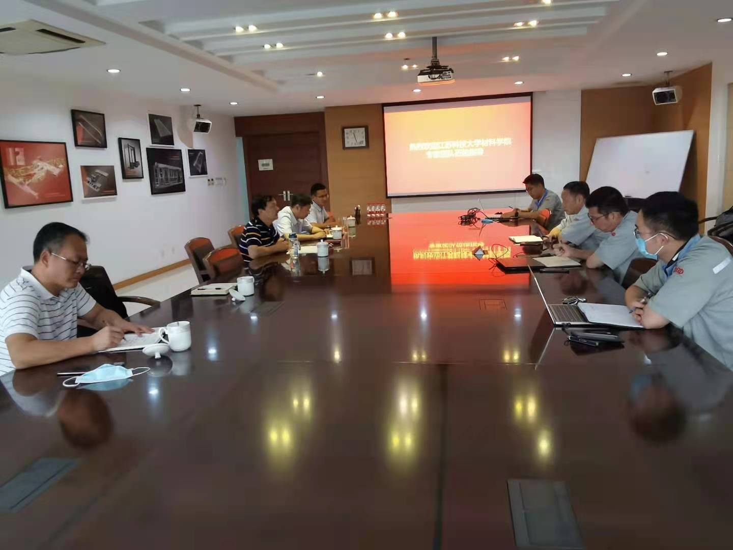 首先,纪益根副董事长对芦笙院长一行表示欢迎,并介绍了公司发展情况。公司集研发与生产为一体,近年来在制造型企业在轨道交通车辆制造新技术、新型运载工具等方面取得了系列新进展,今年6月成功在创业板上市。他表示,公司发展离不开高校的科研和人才支持,希望与江苏科技大学在先进焊接技术、新材料及成型等方面加强合作。随后,杨代立副总经理简要介绍了公司在新型搅拌摩擦焊技术、成型技术及特种材料制造技术等方面的技术需求。芦笙院长简要介绍了材料学院近一年来取得的科研及人才培养成果,并就雷尔伟公司的技术需求介绍了学院的相关科研团队、技术能力和平台条件等情况。