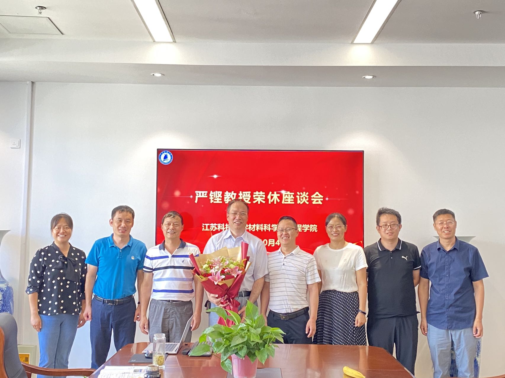 莫道桑榆晚,为霞尚满天。退休是一段工作的结束,也是另一段幸福生活的开始。希望严教授退而不休,老有所乐,尽情享受幸福美满的退休生活。最后,学院为严教授送上鲜花和光荣退休纪念品,并合影留念。(撰稿:赵勇)