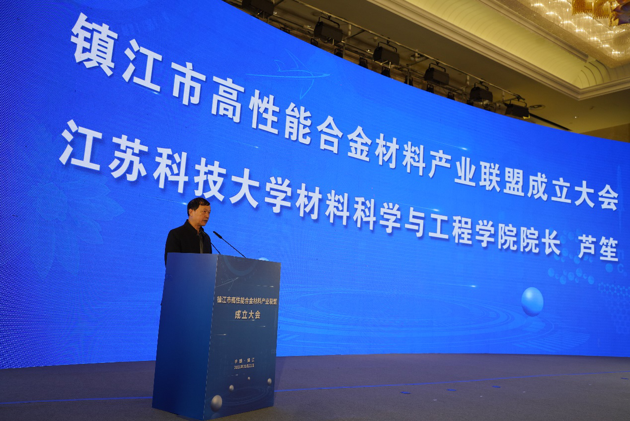 10月22日下午,为持续推动产业强市“一号战略”,推进镇江市高性能合金材料产业高质量发展,镇江市高性能合金材料产业联盟成立大会在九华锦江国际酒店举行。江苏省工信厅副厅长李强,镇江市人大常委会党组副书记、常务副主任孙晓南,镇江市副市长潘早云等省市领导出席联盟成立大会。我校材料学院作为联盟9家发起单位之一,院长芦笙和材料成型系主任石凤健受邀参加大会。