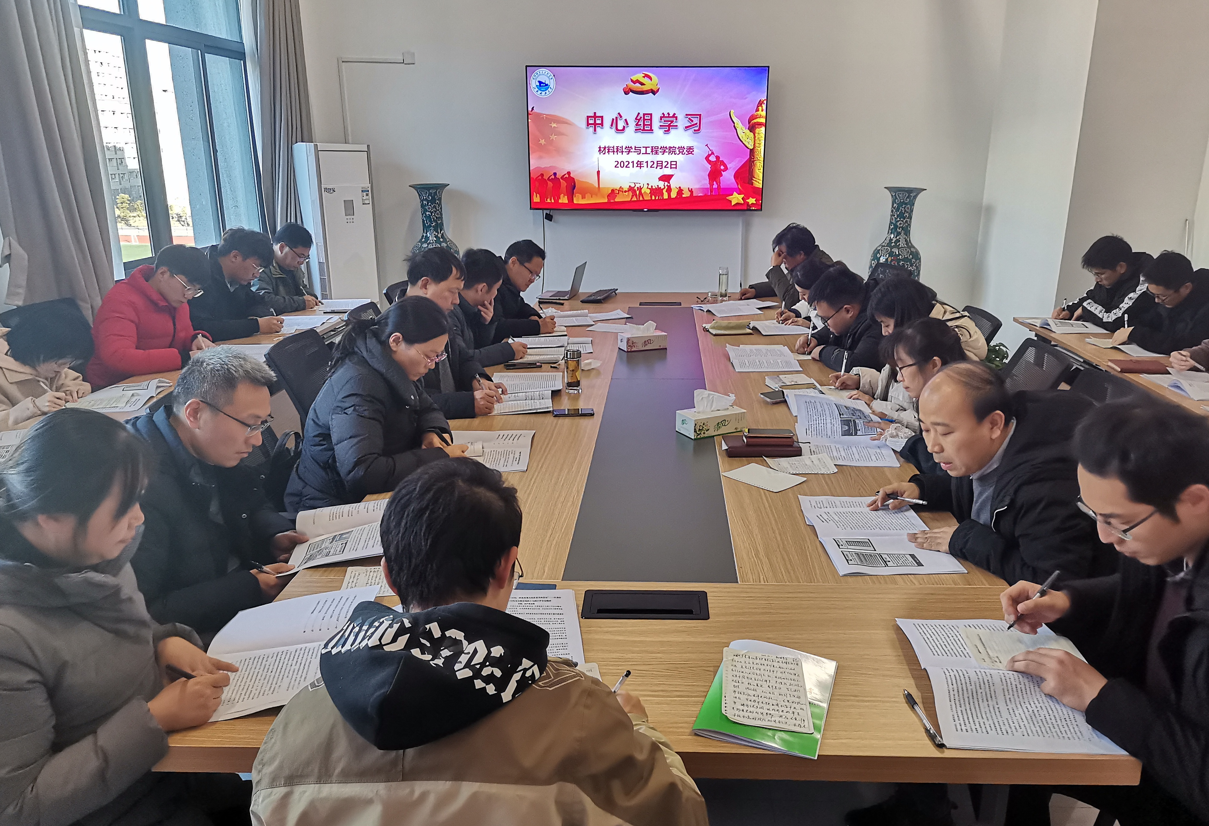 12月2日,材料学院党委组织中心组学习,集中开展了“学习贯彻党的十九届六中全会精神”的专题研讨。学院党委理论学习中心组成员、支部书记和部分支部委员参加。学院党委书记晏超主持学习。