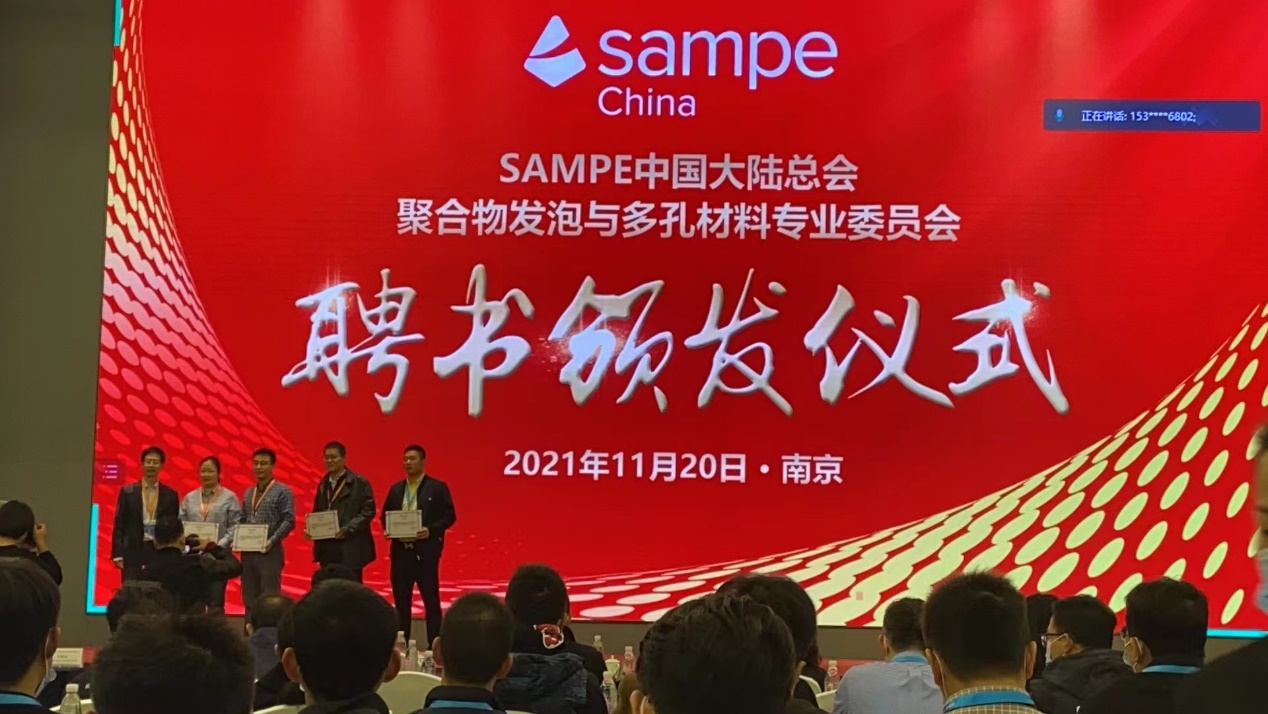 2021年11月19-20日,第二届聚合物发泡与多孔材料高峰论坛(PFPM)在江苏省南京市召开,由华南理工大学、哈尔滨工程大学、郑州大学、中国科学院、华东理工大学、中山大学、北京工商大学、西北工业大学、北京化工大学、福建工程学院、江苏科技大学等400多位专家学者参加线上与线下联合会议。我院周应国教授报告了“多次开模发泡注射制品的微孔形态及变形行为”的最新研究进展情况,并受聘为SAMPE中国大陆总会聚合物发泡与多孔材料专业委员会委员。