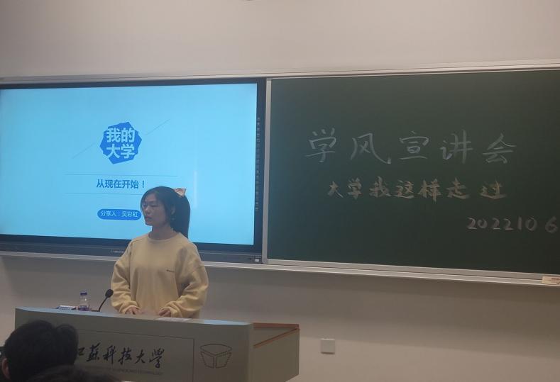 18级保研至东南大学的陈浩谈到,在学风宣讲中,无论是大二还是大三的学弟学妹都非常积极,大家对于考研、读研的愿望是相当强烈的,这让我想起我大一的时候也听过学长学姐的交流分享,转瞬间自己成为了宣讲的一员,与有荣焉。20级金属专业卞欣月分享道,学长们结合自身经历进行宣讲,丰富的个人经历,使得大家对自身在大学的计划有了新的认识与思考,自己深刻认识到自身与优秀学子之间的差异与不足,优秀的榜样让自己看到了前行的目标。