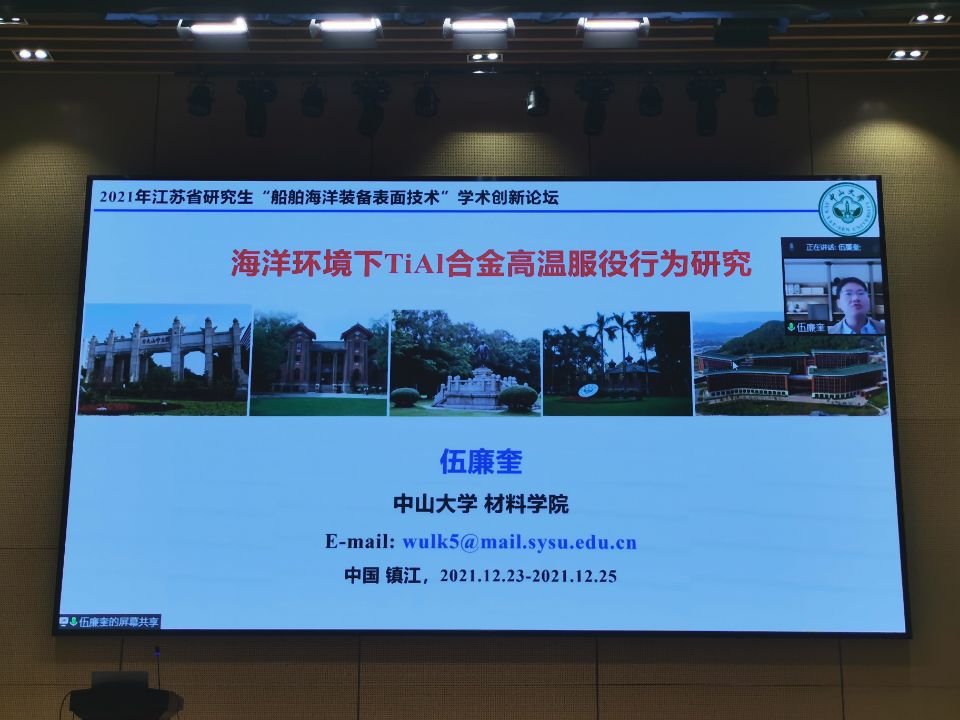 12月23日至25日,由江苏省工学3类研究生教育指导委员会主办,江苏科技大学承办的2021年江苏省研究生“船舶海洋装备表面技术”学术创新论坛在我校成功召开。校党委副书记许俊华教授和江苏省研究生教指委委员江苏科技大学教授徐玉松出席论坛并致辞。开幕式由江苏科技大学材料科学与工程学院院长芦笙教授主持。