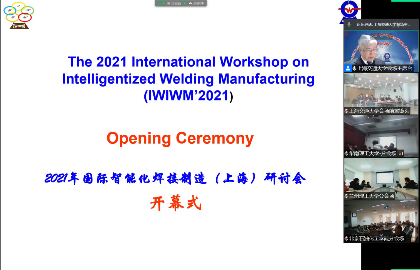 由中国焊接学会机器人与自动化专业委员会等学会机构主办,上海交通大学和新加坡南洋理工大学承办,我校协办的2021年国际智能化焊接制造研讨会(IWIWM’ 2021)于2020年12月28至30日采用线上、线下的方式如期举行,共有国内外代表300余人参会。会议开幕式由中国焊接学会机器人与自动化专业委员会主任、教育部长江学者、上海交通大材料学院陈善本教授主持。