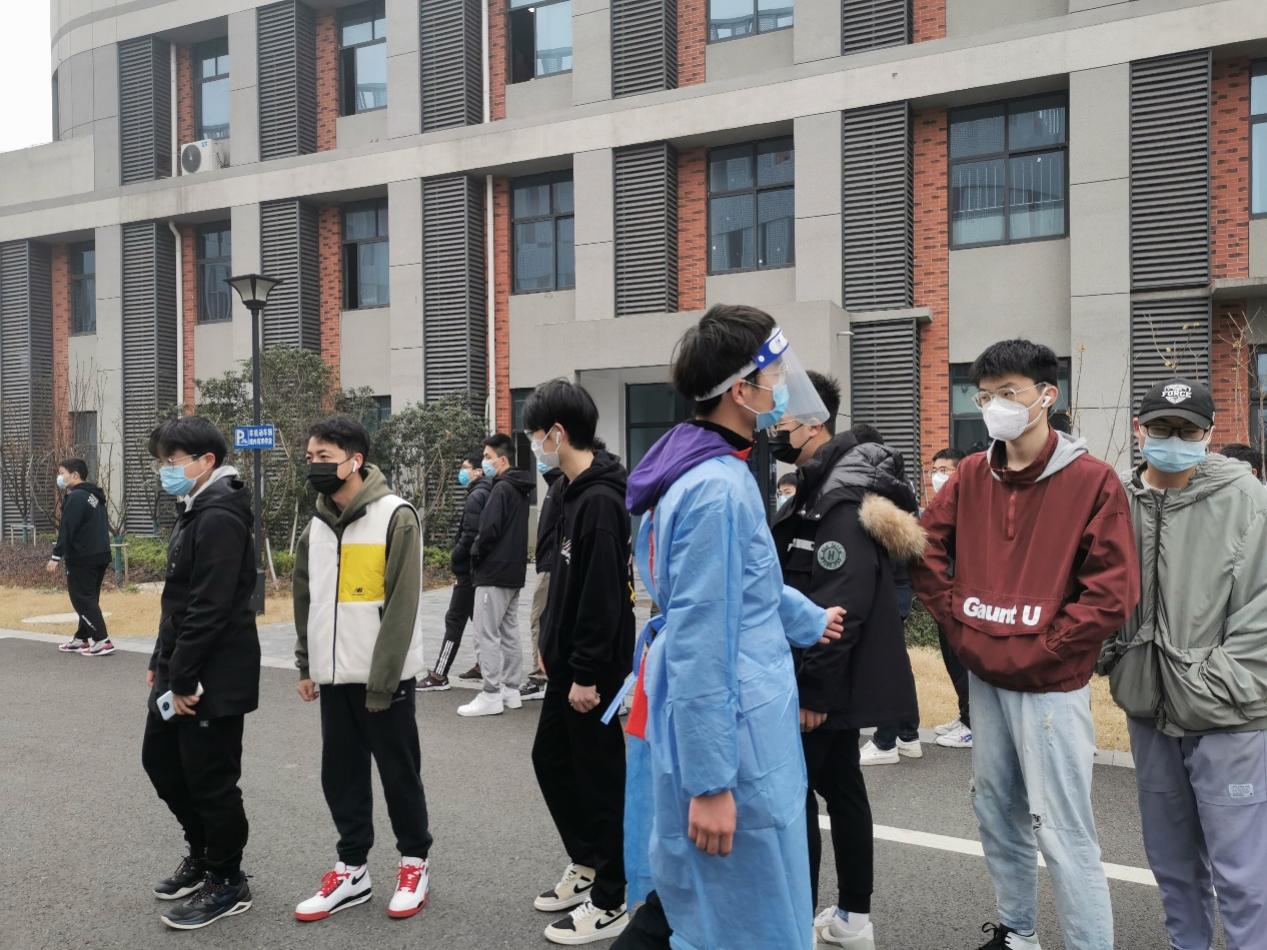 为配合学校顺利完成全校师生的核酸检测工作,材料学院腾飞服务社志愿者们在老师的指导下,合理分配任务,安排工作,在文体中心南门采样点有效组织多个学院的学生进行采样。腾飞服务社志愿者在老师指导下组织引导学生有序排队,志愿者在自己的岗位上认真负责地工作,整个核酸检测现场,安静迅速,秩序井然。所有学生在引导下间隔一米有序排队。在信息采集点,一部分志愿者将同学们以十人一组的形式带至采样点登记并提醒他们戴好口罩并携带身份证,另一部分志愿者引导每一组已进行信息采集的同学有序进行采样。完成采样后的个别学生喜欢扎堆聚集,志愿者第一时间引导同学离开现场,不影响未采样的同学。材料学院一千五百余名学生全员完成核酸检测后,志愿者仍坚守岗位继续服务于疫情防控第一线,为后续核酸检测做好服务保障工作。