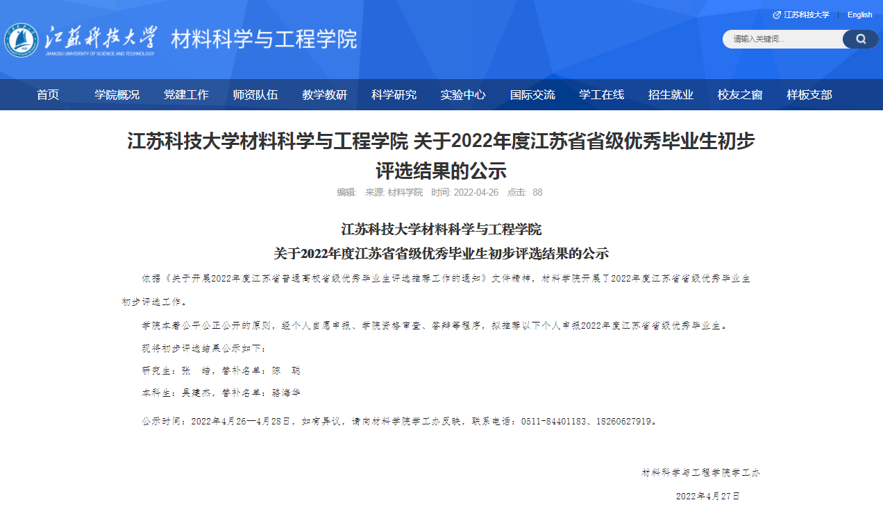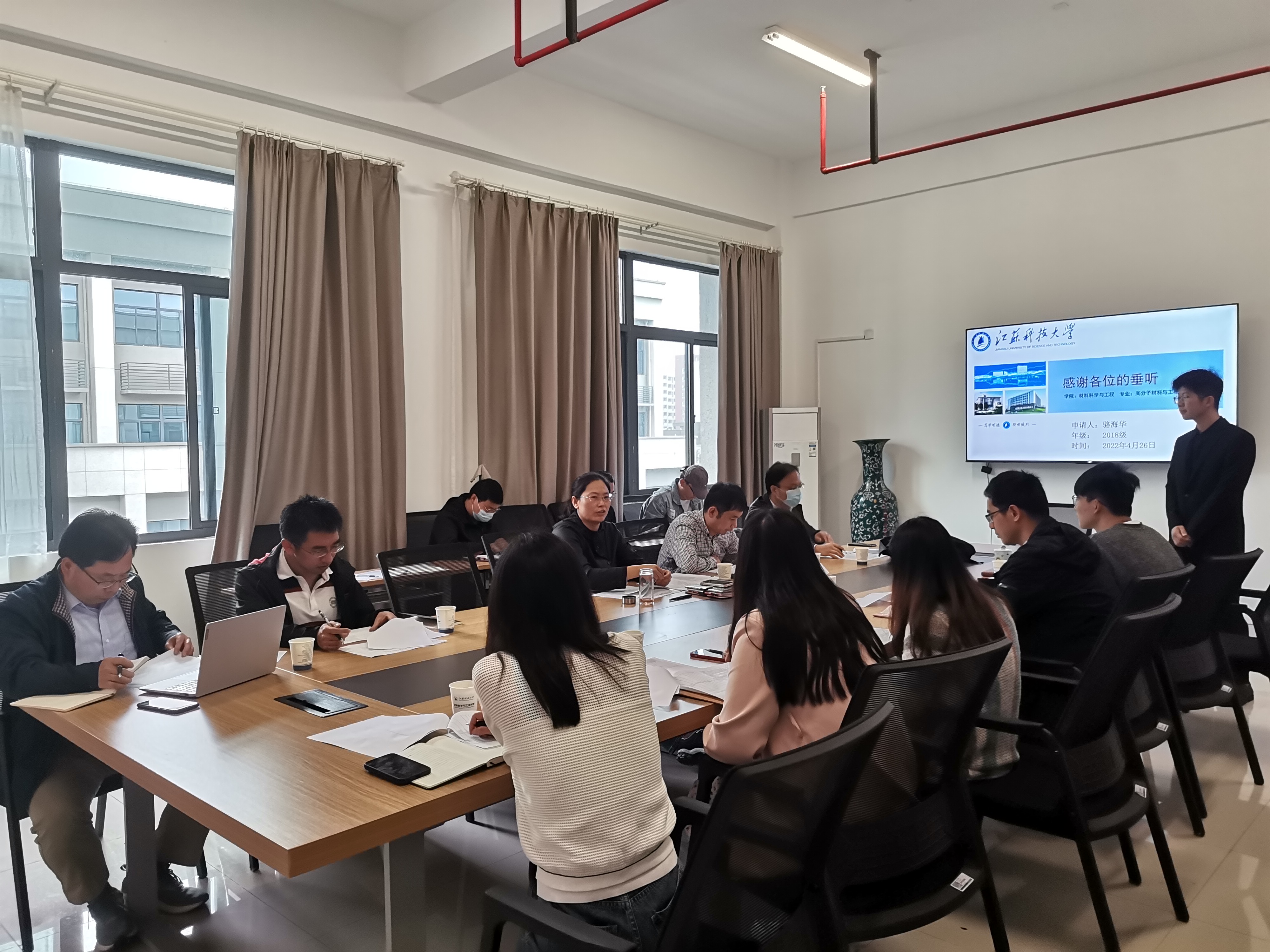 根据学校《关于开展2022年度江苏省普通高校省级优秀毕业生评选推荐工作的通知》文件的指示精神,材料学院于4月26日在长山校区材料楼518会议室召开了2022年度江苏省省级优秀毕业生候选人答辩会。学院副院长李瑞峰、党委副书记赵莉、各位系主任以及全体辅导员担任评委。