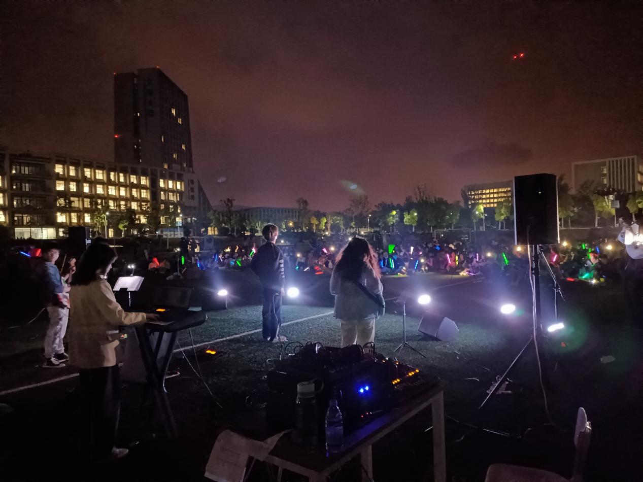 57日下午,协会成员早早来到操场进行设备布置与调试,经过三个小时紧锣密鼓地准备,下午5活动开始。首先由BBQ乐队带来了《温柔》,《春风十里》,《鼓楼》,《总有一天你会出现在我身边》,动人的歌声吸引了不少同学,操场上的同学越来越多。