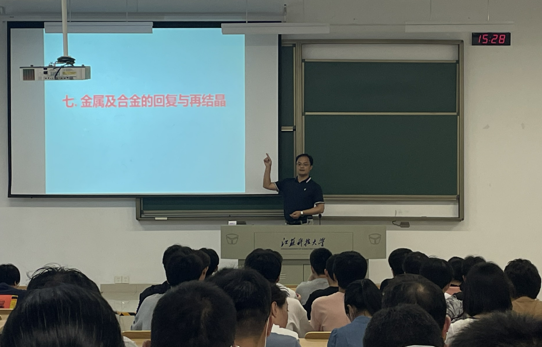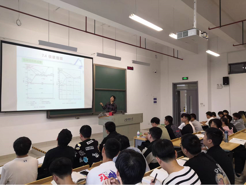 材料学院副教授冯迪老师为大家展示了材料科学基础A课程中的“回复与再结晶”部分。材料科学基础A旨在培养学生从专业角度描述金属材料相关工程问题的思路及方法,最终使学生具备金属材料复杂工程问题的解决能力。回复与再结晶知识则是学生设计或优化材料制备工艺、避免产品缺陷的重要基础理论。本次线下授课以教师讲授、学生互动参与的形式展开,按照基础理论讲解、科研结果展示、案例列举以及课堂互动四个环节依次推进。授课过程中所展示的实际微观组织图片给观摩师生留下了深刻的影响。直观的视觉冲击是学生牢记回复与再结晶组织演变规律的有效途径。授课教师同时在学校超星泛雅平台建设了本课程的在线课程资源,并提供在线答疑,以供同学们课后随时随地复习和巩固课程内容。