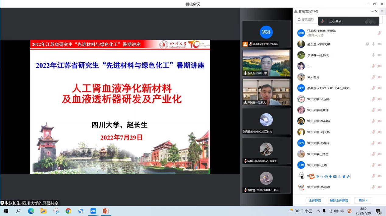 729日上午9点,秉着拓宽研究生学术视野,实现优势互补、资源共享的目的,由学院承办的先进材料与绿色化工”暑期学校邀请四川大学赵长生教授为学子们做学术前沿报告,报告由材料学院李瑞峰教授主持,报告采用线上的方式进行。