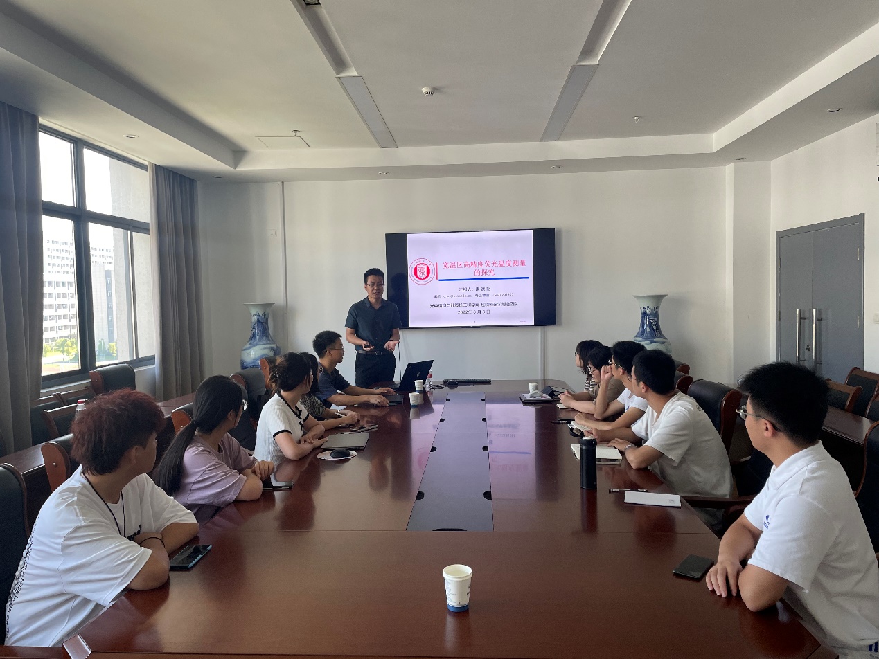 8月8日上午,上海理工大学光电信息与计算机工程学院禹德朝教授应材料学院黄赛芳教授邀请,在长山校区材料楼514会议室作了题为“宽温区高精度荧光温度测量的探究”的学术讲座。功能材料系部分师生参加了讲座。