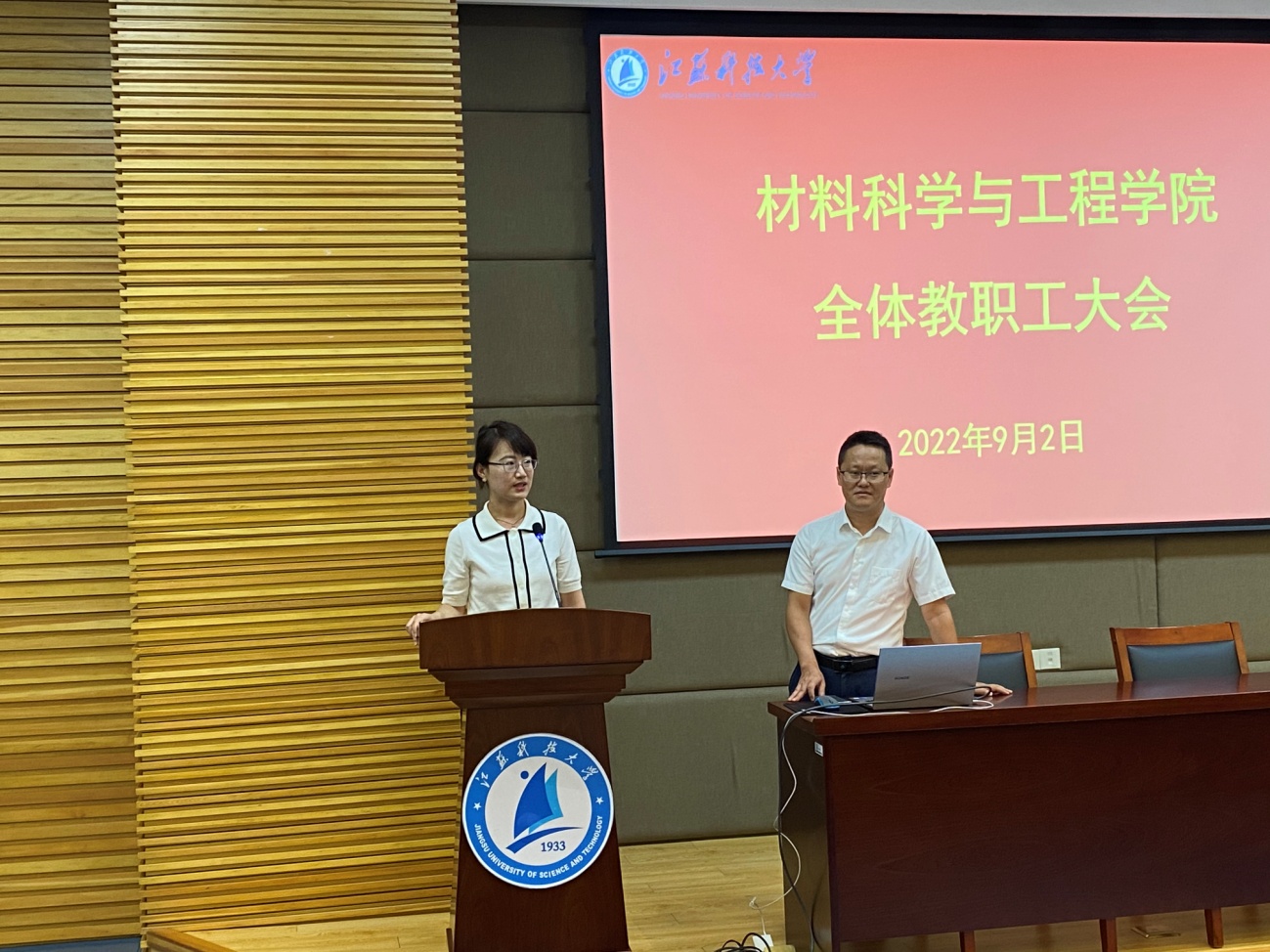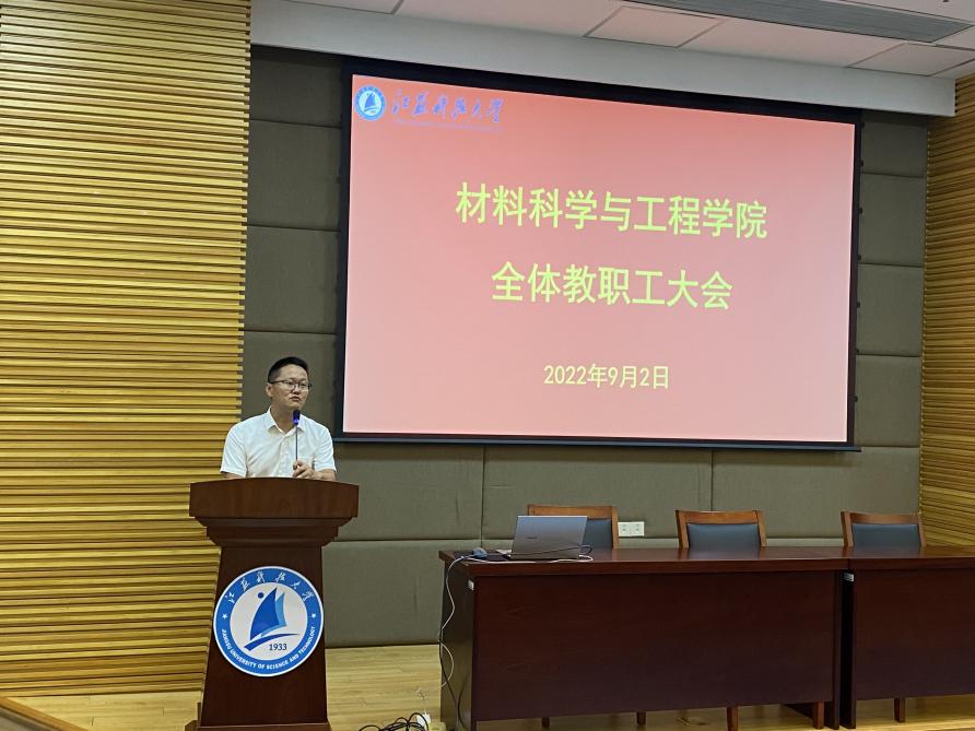 9月2日上午,材料学院在图书馆B101报告厅召开新学期教职工大会,总结上半年工作成果,部署新学期重点工作。学院全体教职工参会,学院党委书记晏超主持会议。