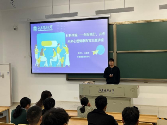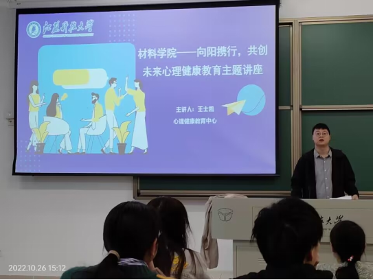 为提升学生的心理素质,能够更好地适应融入日常的学习生活,推动学院心理健康教育,材料学院于10月26日下午三点开展“向阳携行,共创未来”心理健康教育主题讲座。本次讲座特邀江苏科技大学心理健康教育中心王士凯主讲《掌握快乐密码之认识内心自我》。材料学院98名22级研究生、部分本科生心理委员参加讲座。讲座由材料学院辅导员王远杰主持。