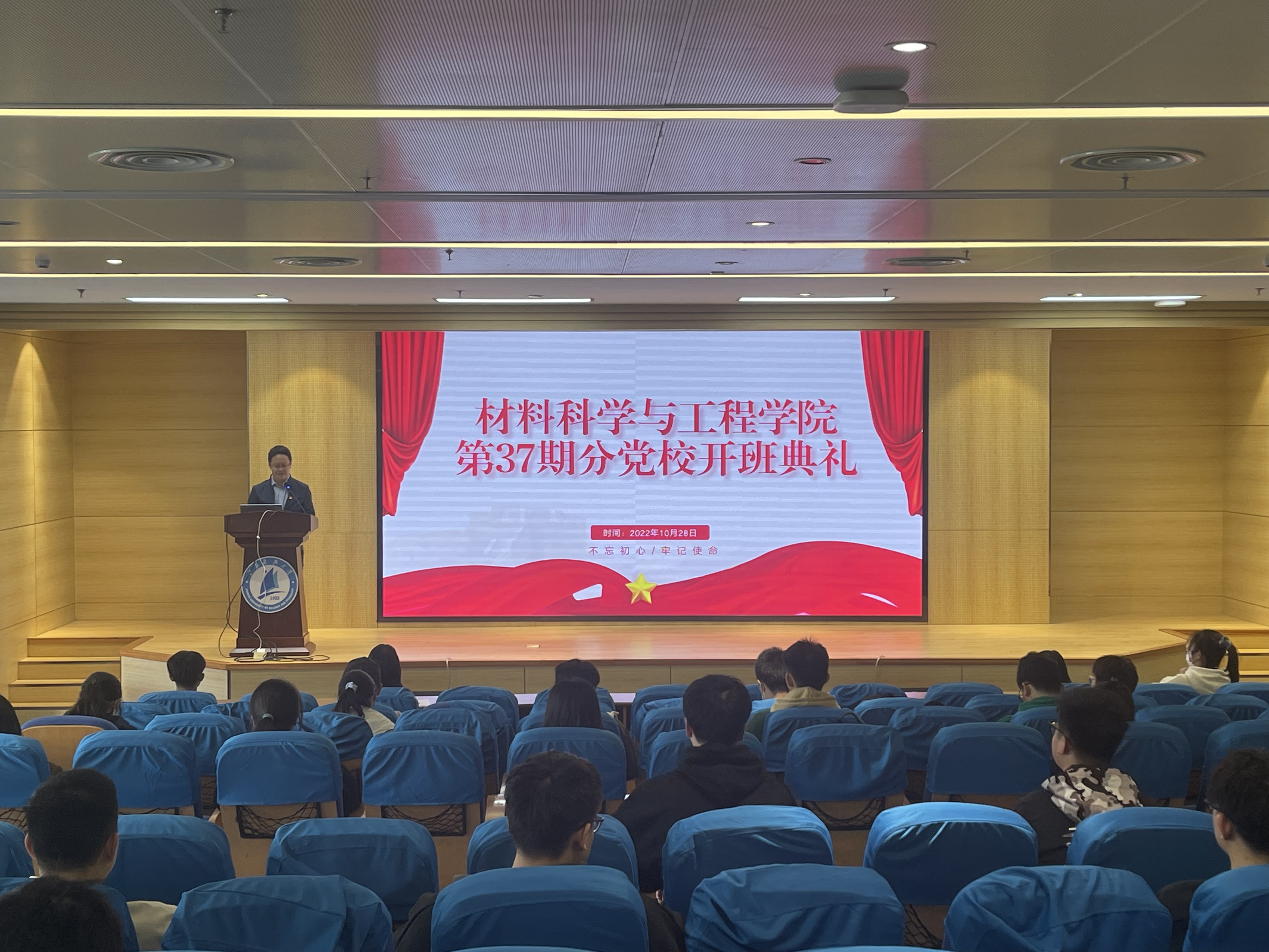 为进一步提高学生思想觉悟,推进党史学习教育常态化长效化,10月28日上午,材料学院第37期分党校培训开班仪式在图书馆报告厅隆重举行。学院党委书记、分党校校长晏超,学院党委副书记、分党校副校长赵莉,党课培训班班主任郑砚云和91名学员共同参加了开班仪式。
