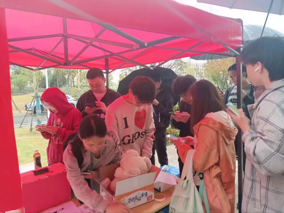 线上部分的活动采用留言方式,参与活动的同学可向材料学院QQ公众号江苏科技大学材料之声留言,表达自己对母校的殷切祝福或者是对未来自己的寄语。线下部分的活动则在长山校区东食堂门口进行,活动内容主要是校园知识竞赛答题环节,参与答题并取得较好成绩的同学可以参与抽奖,获得多种精美的小礼品。活动当天虽然下起了雨,但却依然阻挡不了同学们的热情。活动现场充满欢声笑语,每一位同学都在喜悦中对我校的历史以及各知识有了一定的了解。本次活动参与人次达一百余人。在这个特殊的节日里,每一位参加活动的同学都收获了来自江科大、来自材料学院的温暖。