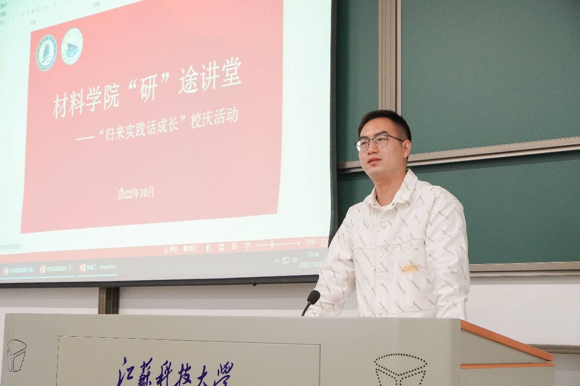 在江苏科技大学89周年校庆之际,10月28日,材料学院开展“归来实践话成长”主题活动。材料学院22级60余名研究生参加活动,活动由研究生辅导员李鹏飞主持。