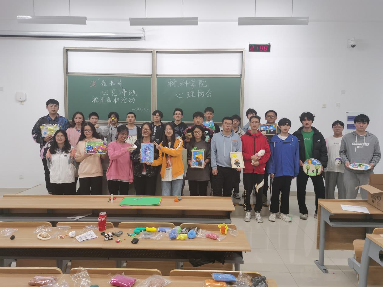 11月12日,材料学院在长山校区笃学楼408教室开展“泥我共寻,心灵净地”粘土画框活动。活动以粘土装饰画框为主题,心理委员们充分发挥特长,展现自信,将自己的想象力和知识借助粘土融入画框中。活动过程充分展现了同学们的观察力、想象力、记忆力和创造力,大家通过表现自我、舒展自我内在意欲和情感,调节心理,释放情绪,激发了学生主观能动性,帮助形成正确的思维方式和生活态度。