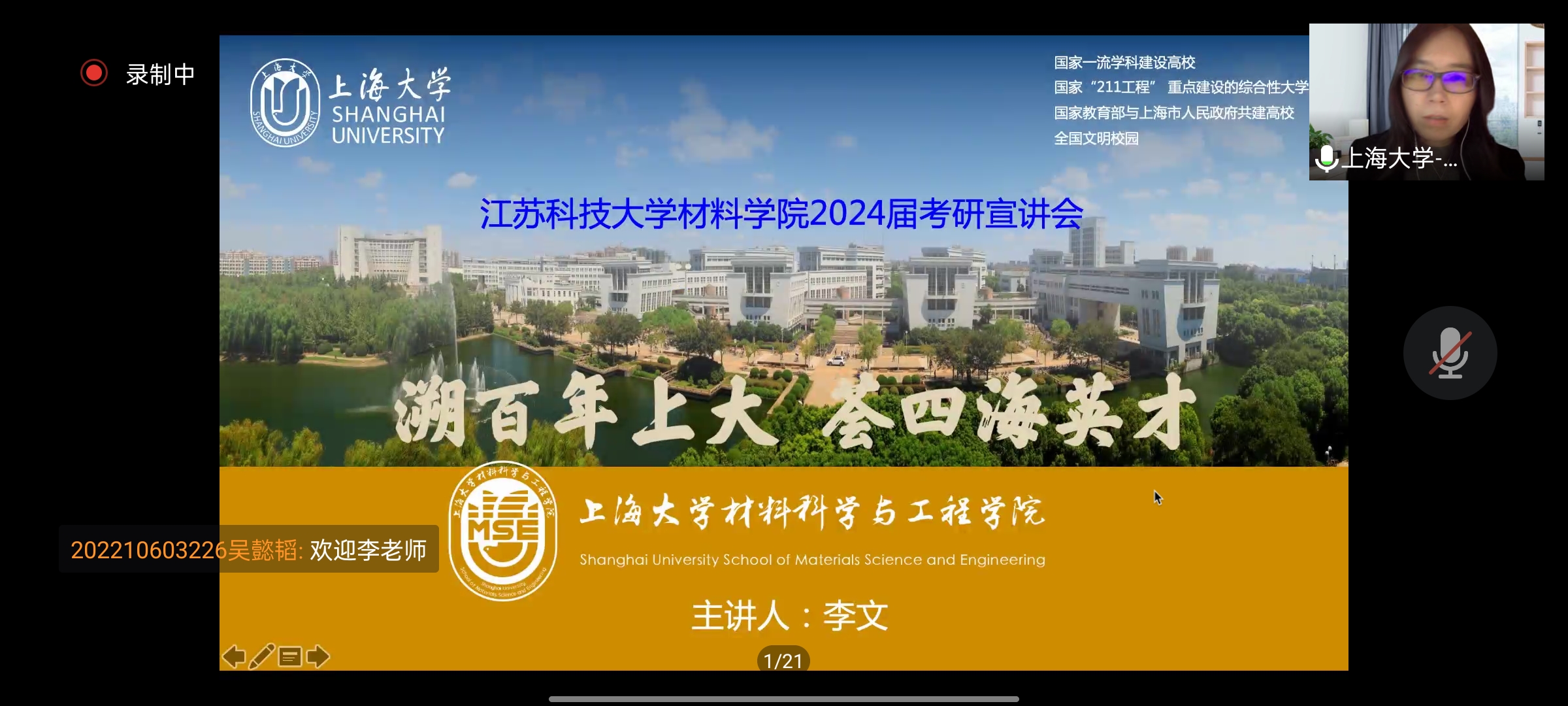 会上,重庆大学胡耀波教授就历史沿革、学科优势、师资队伍、科研平台与成果、国际合作交流、人才培养等方面向同学们介绍了重庆大学材料学院的特色与优势;上海大学李文副教授展现了上海大学材料学院在的学院概况、科学研究、人才培养、学院特色等方面的卓越成绩;江苏科技大学胥国祥教授主要从人才培养、学院简介、学科发展现状等方面来介绍并欢迎同学们报考母校;中南大学陈志永教授围绕中南大学的学院概况、人才培养、科研条件、教育特色进行讲解,展现了中南大学的优良学风。同学们对应邀而来的每位宣讲嘉宾都表示了热烈的欢迎,并积极与教授们交流互动。