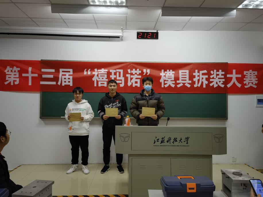 12月11日晚,江苏科技大学第十三届“禧玛诺”模具拆装大赛决赛在长山校区落下帷幕。本次大赛由江苏科技大学材料科学与工程学院模具协会举办,主题为“展模具之美,兴科技之风”,历时6天。大赛以两到三人为小组方式进行,共33人参加,最后评选出一组一等奖、三组二等奖、五组三等奖和一组优胜奖,黄忠富老师出席评价环节。