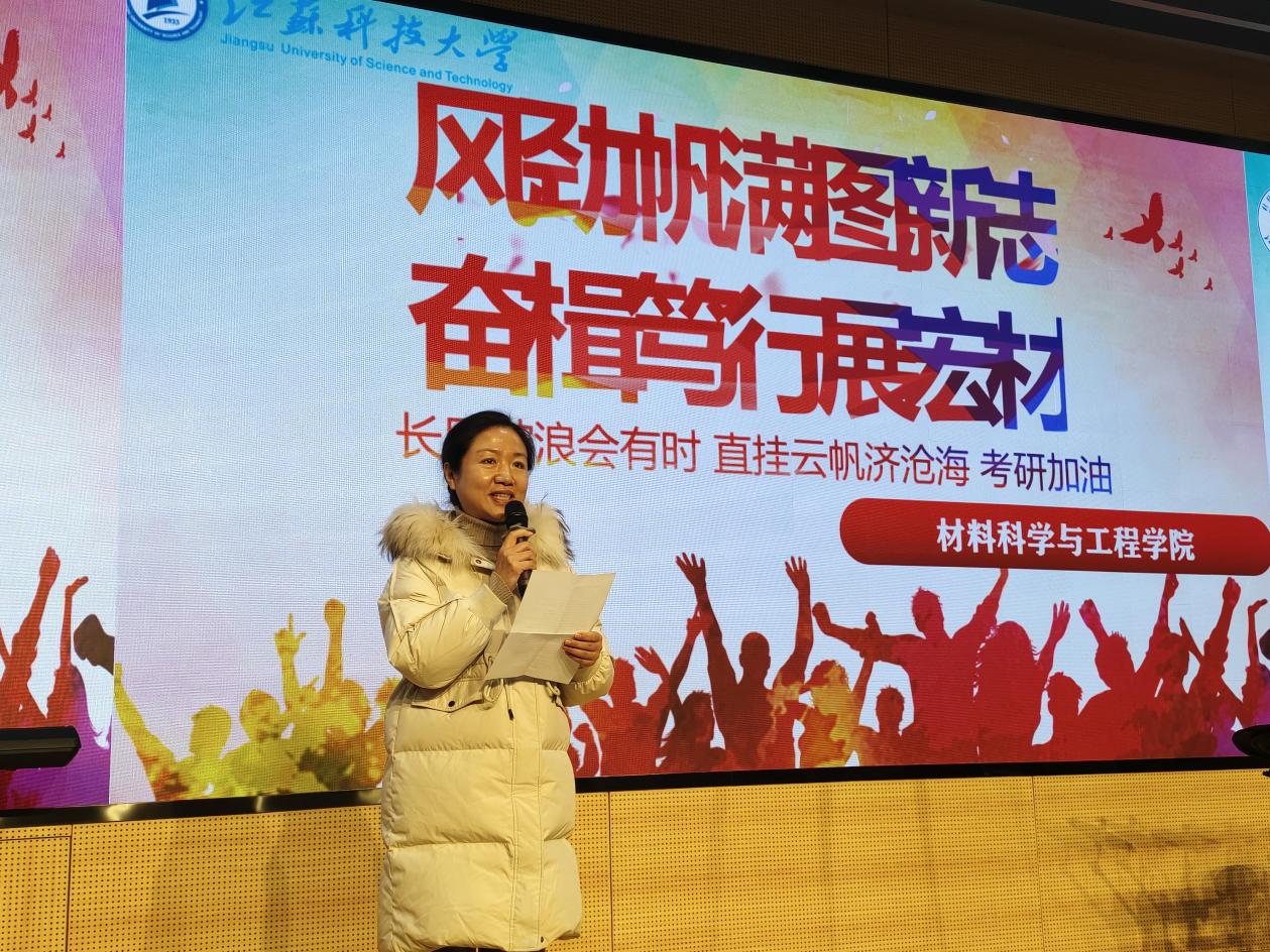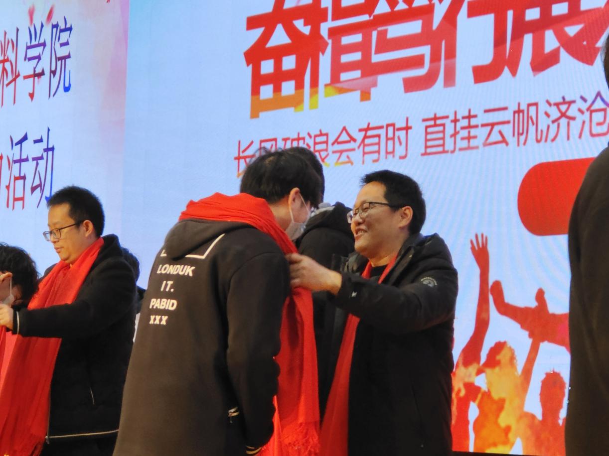 随后,晏超院长代表材料学院给考研学子送上祝福,希望同学们坚定目标,放平心态,期待材料学子在研究生考试中蟾宫折桂,金榜题名。希望同学们不屈服于现实的残酷,怀揣梦想,让内心的不甘梦想成化为自己的前进动力,期待材料学子在研究生考试中蟾宫折桂,金榜题名。